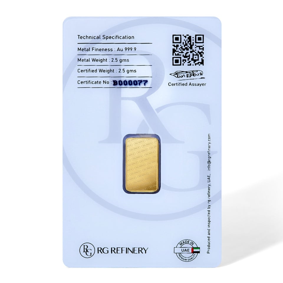 سبيكة ذهب مستطيلة الشكل من ماركة رافموه. قطعة مميزة للادخار الذكي المتدرج والآمن في السعودية. تمثل السبيكة رغم حجمها الصغير مدخلاً لعالم الذهب. سبيكة ذهبية تتميز بتصميم أنيق وجودة تصنيع عالية. يمنحها وزنها الصغير سهولة النقل والحفظ في المحافظ أو الخزائن الشخصية.
