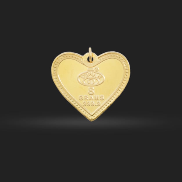 سبيكة بتعليقة ديوان الذهب السعودية الجديدة تُعتبر من أفخم السبائك الذهبية المتاحة في السعودية. بفضل نقائها العالي بنسبة (999.9)، تعد سبيكة Dewan مثالية للإهداء والادخار، لما تتمتع به من جودة استثنائية وتصميم أنيق على شكل قلب.💛