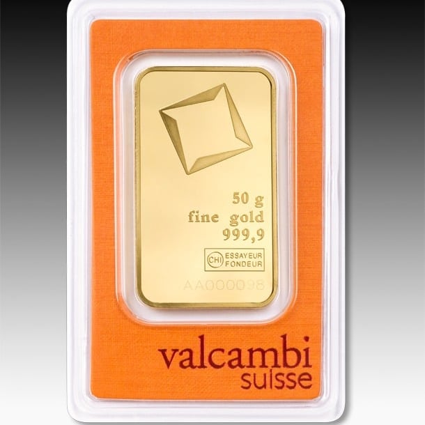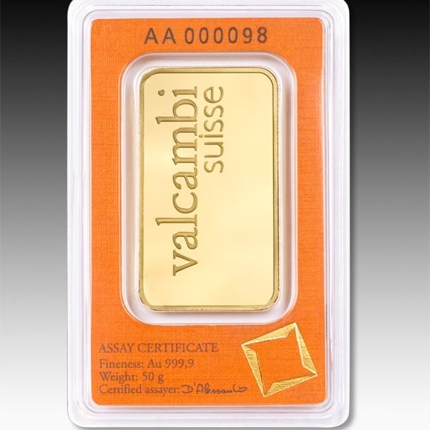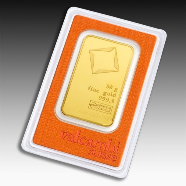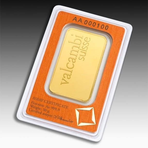 سبيكة ذهب فالكامبي Valcambi السويسرية عيار 24 بوزن 50 جرام