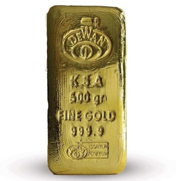 سبيكة ذهب عيار 24 بوزن 500 غرام ديوان الذهب