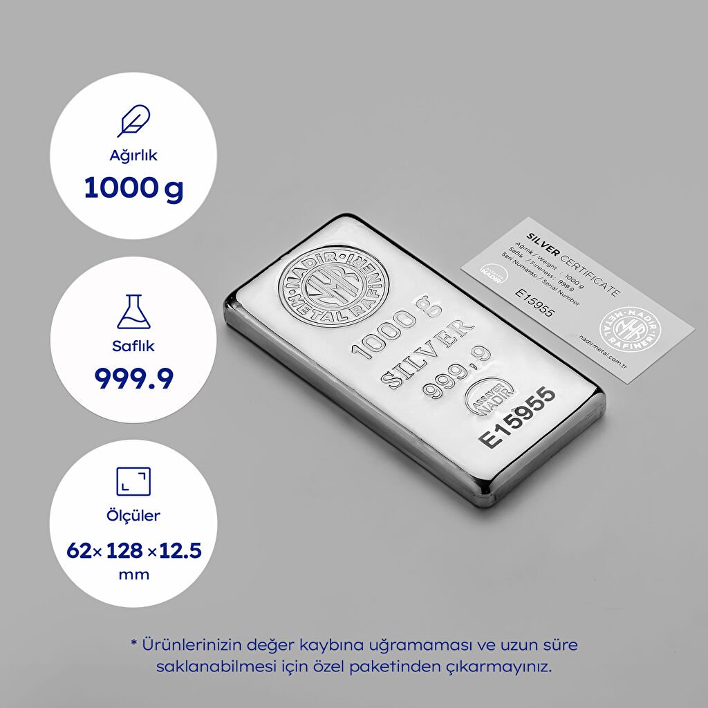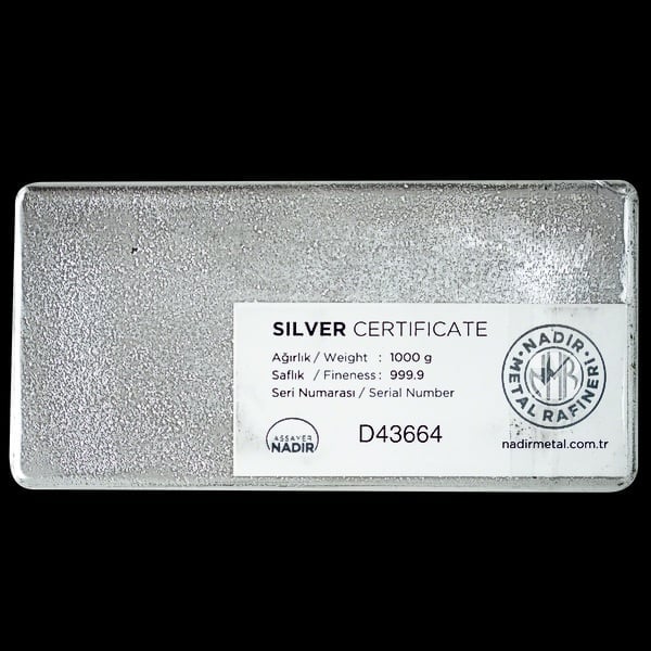 امتلك القيمة الحقيقية للفضة مع سبيكة بوزن 1 كيلو غرام (1000 غرام) من مصفاة "نادر ميتال" (Nadir Metal Rafineri) التركية العريقة. هذه السبيكة "المصبوبة" (Cast Bar) هي الخيار المفضل للمستثمرين الباحثين عن إضافة وزن كبير من الفضة الخالصة إلى محافظهم بتكلفة إضافية منخفضة.
