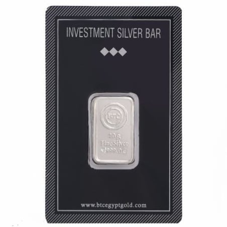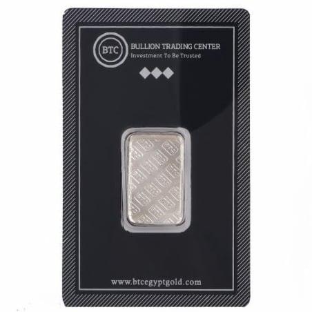 Ein 10-Gramm- BTC -Barren mit der höchsten Reinheit von 999. Hergestellt in der Arabischen Republik Ägypten unter der berühmten ägyptischen Marke BTC . Es wird in einer eigenen Karte verpackt geliefert, um sicherzustellen, dass es nicht zerkratzt oder beschädigt wird .