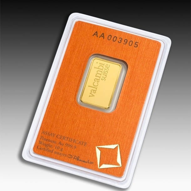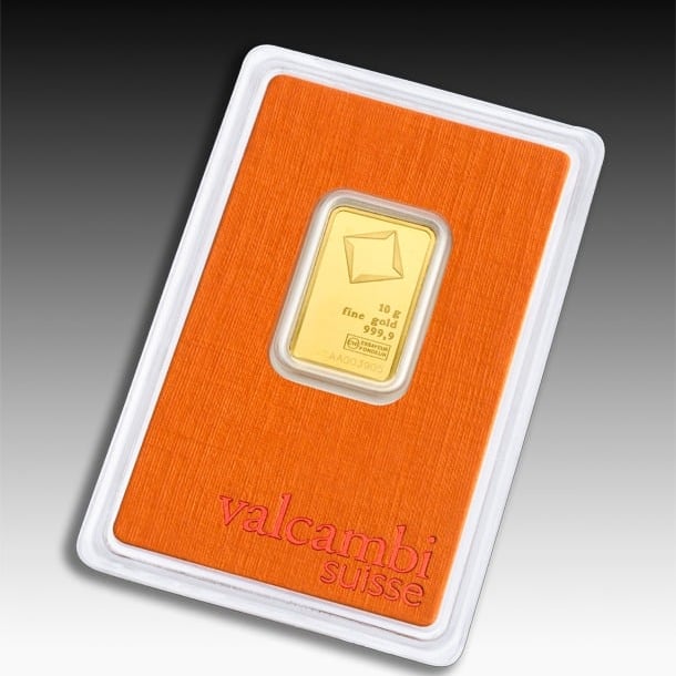 Valcambi Schweizer 24-Karat-Goldbarren, 10 Gramm