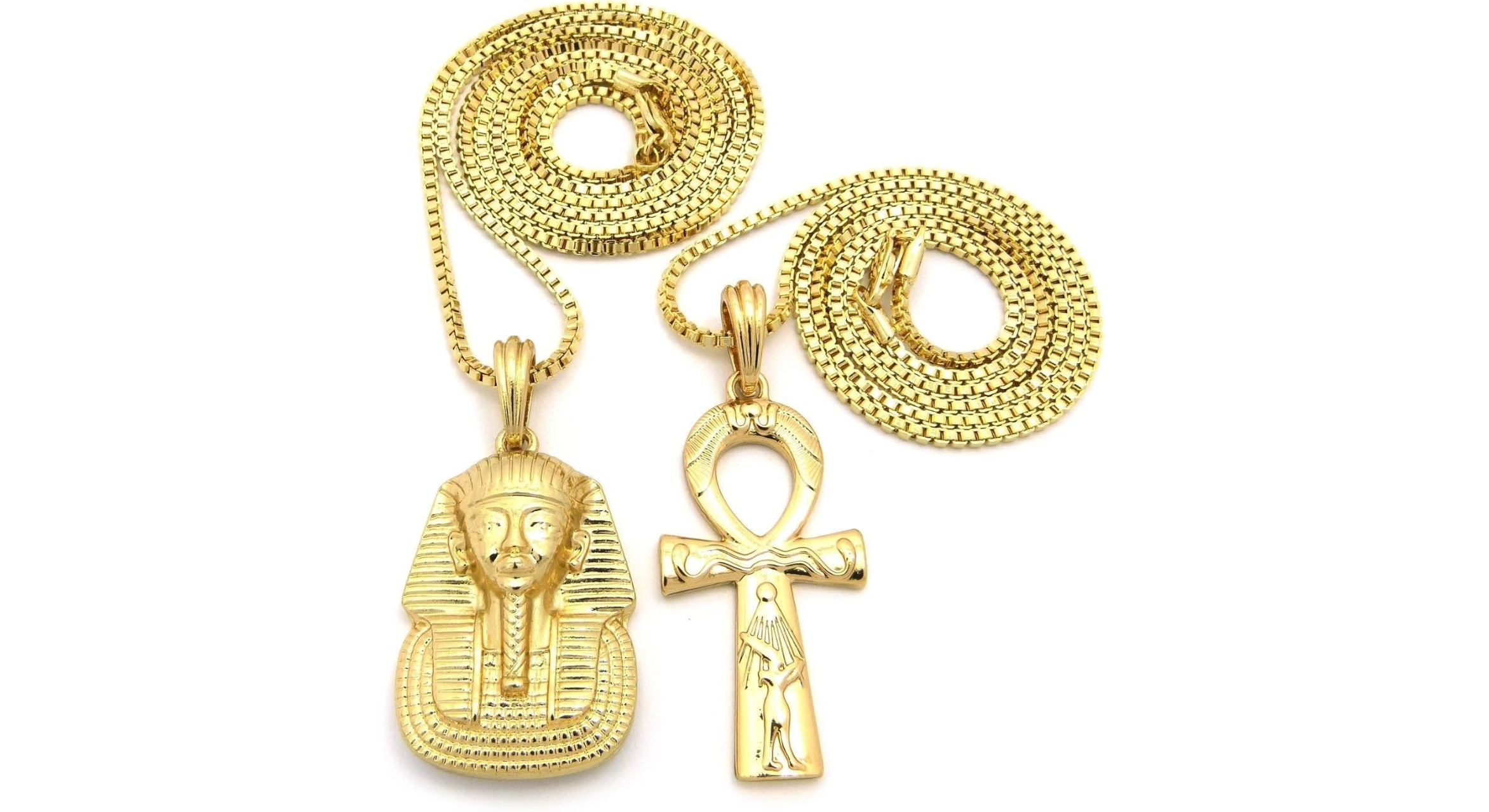 In ancient civilizations such as Pharaonic Egypt , gold was considered a sacred metal associated with gods and kings. The pharaohs used gold to make crowns, bracelets, amulets, coffins and royal pieces that symbolized eternal life and divine power. The designs were characterized by intricate details and engravings depicting gods and spiritual beliefs. They relied on symbols such as the Eye of Horus and the scarab, which carried spiritual and protective meanings; designs at that time relied on fine decorations and intricate details that reflected social and religious status. For example, the "Scara" necklace is considered a symbol of protection and power in Egyptian culture.