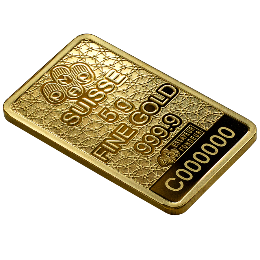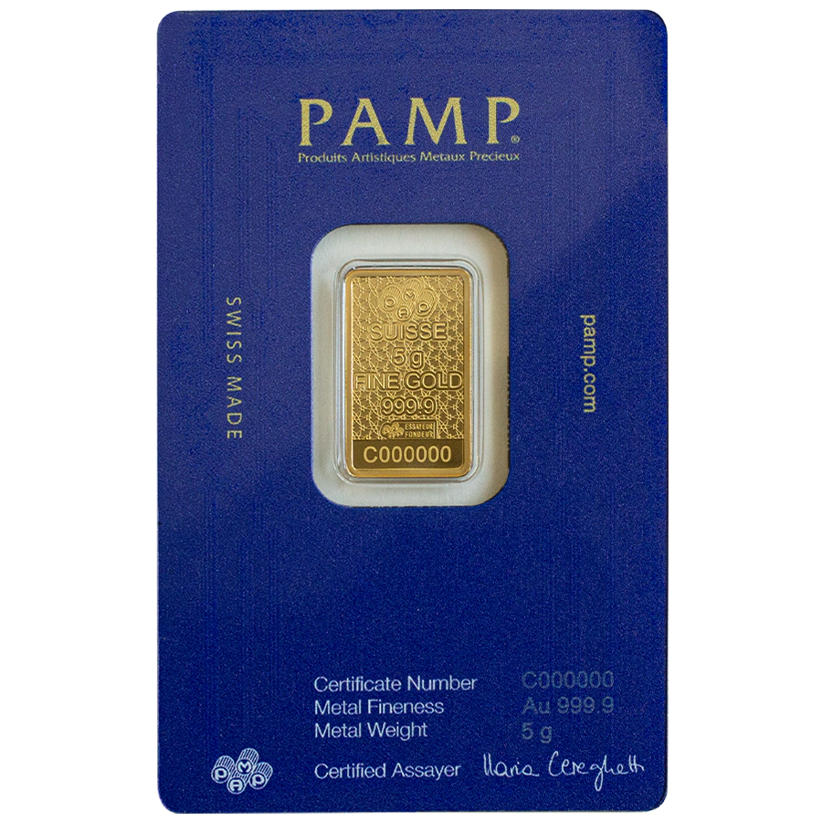 Lingot d'or suisse PAMP 24 carats, pesant 5 grammes