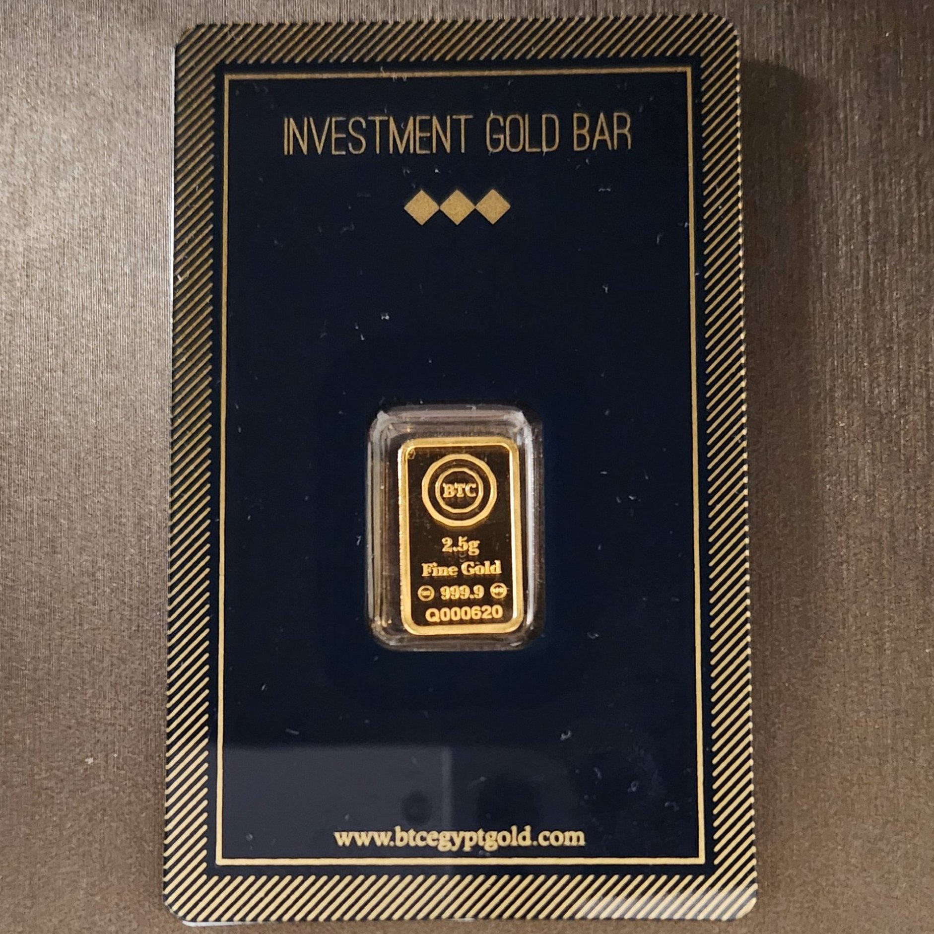 बीटीसी गोल्ड बार 24 कैरेट, 999.9 शुद्धता, 2.5 ग्राम , संयुक्त अरब अमीरात में निर्मित, प्रसिद्ध मिस्र बीटीसी ब्रांड के तहत
