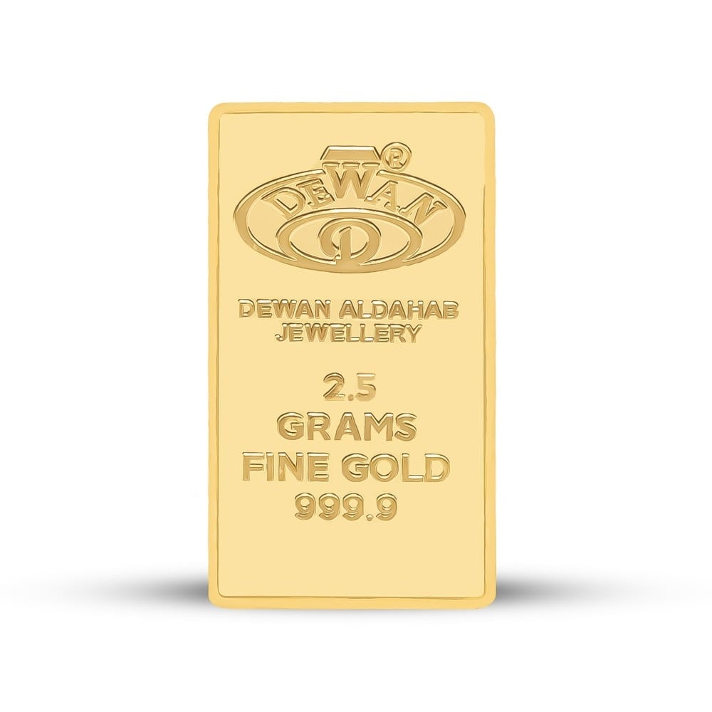 重量2.5グラムのDewan 24カラットの金の延べ棒。