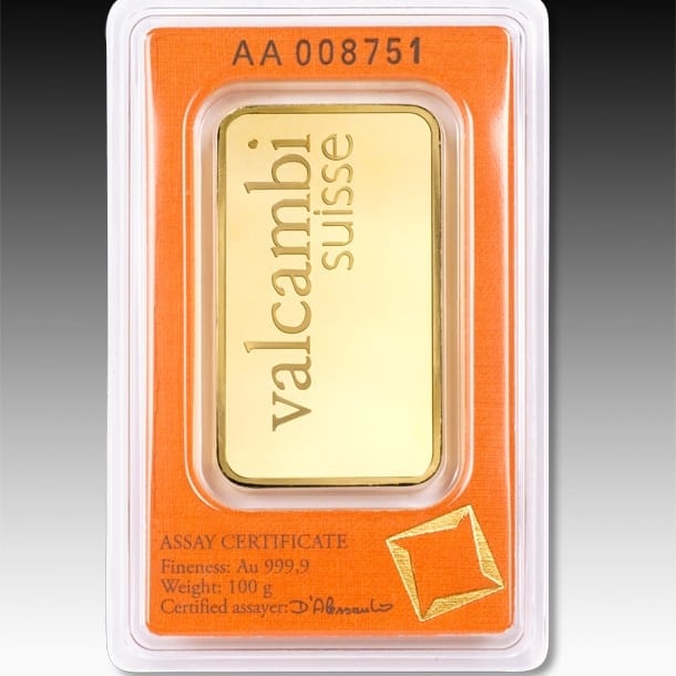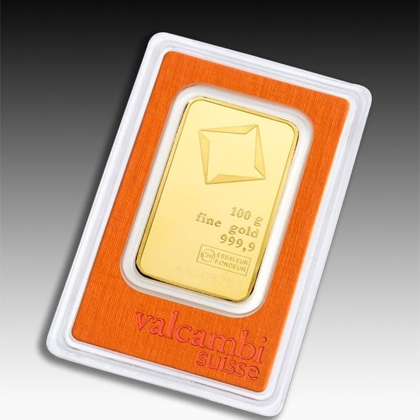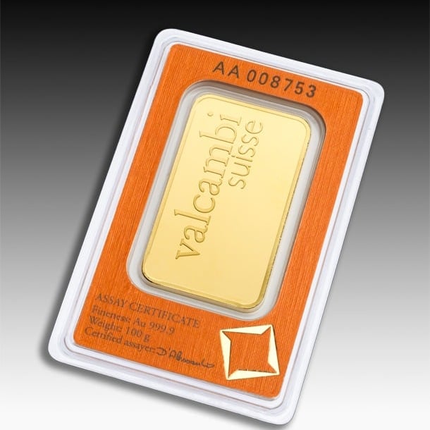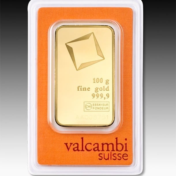 24 karat Valcambi gold bar, 100 gramo